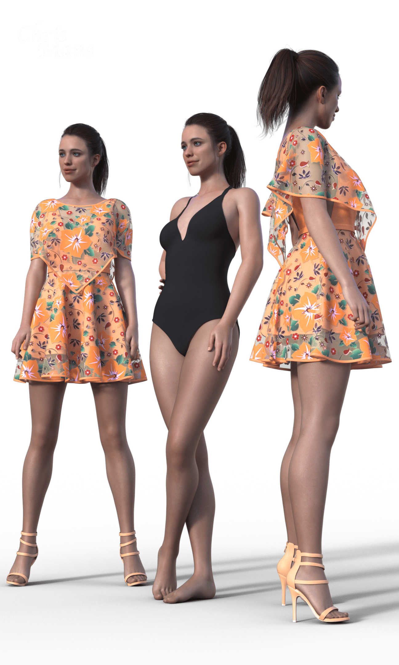 Le Style 1 propose, en trois looks, une tenue toute en légèreté et en finesse, avec un collant chair très fin et uni.